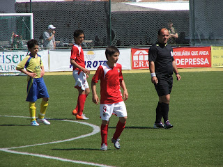 Após o 2º golo o S.Roque baixou o ritmo mas continuou a aproveitar as facilidades do nosso corredor esquerdo para provocar alguns sustos. Os nossos miúdos foram "aguentando" até ao intervalo a desvantagem que pela sua postura parecia irreversivel.